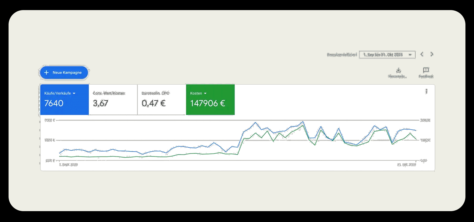 eine etablierte d2c-brand im männerpflege-segment hatte noch keinen google ads account. das ziel: einen komplett neuen kanal aufbauen. das besondere: statt dem klassischen weg – erst pull aufbauen, dann irgendwann push – haben wir durch die natur der produkte den push-kanal von anfang an mitgedacht und etabliert. eine bewusste abweichung von unserem üblichen framework, die sich massiv ausgezahlt hat.